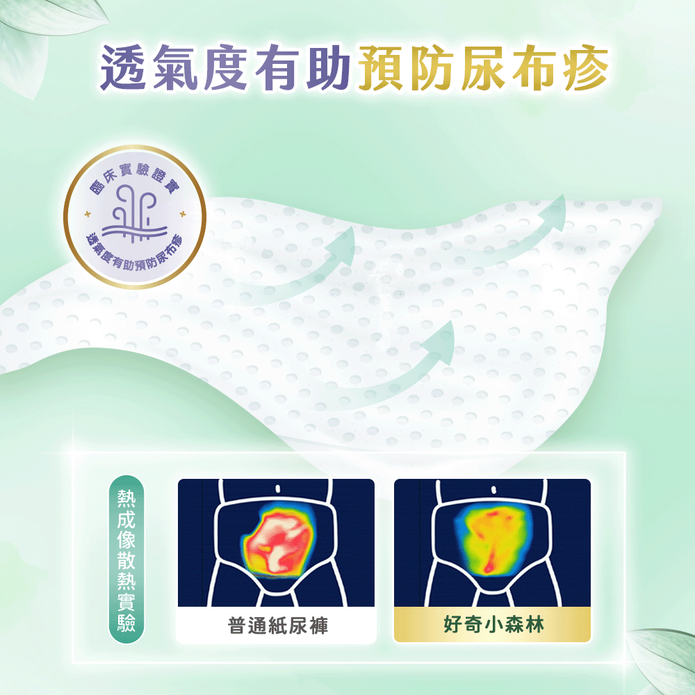 .臨床實驗證實,透氣度有助預防尿布疹
